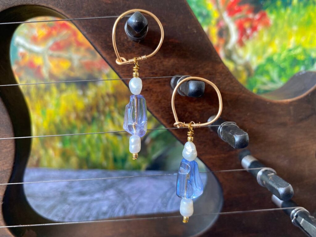 Ювелирная проволока, натуральный жемчуг, стекло.