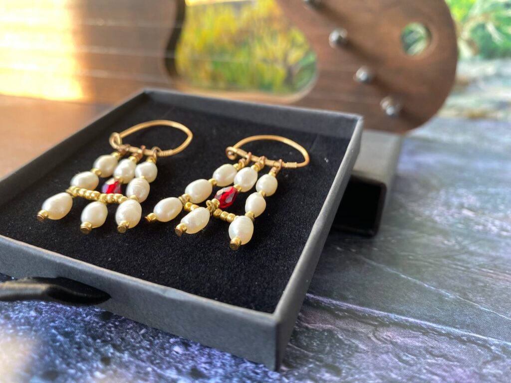 Серьги упакованы в подарочную коробочку. Человек с трепетом откроет коробочку, потом еще одну( мы надежно упаковали👌🏻), достанет футляр и будет чувствовать связь эпох, красоту и эстетику сережек, которые запечатлены на полотнах художников и сохранены в экспозициях музеев.